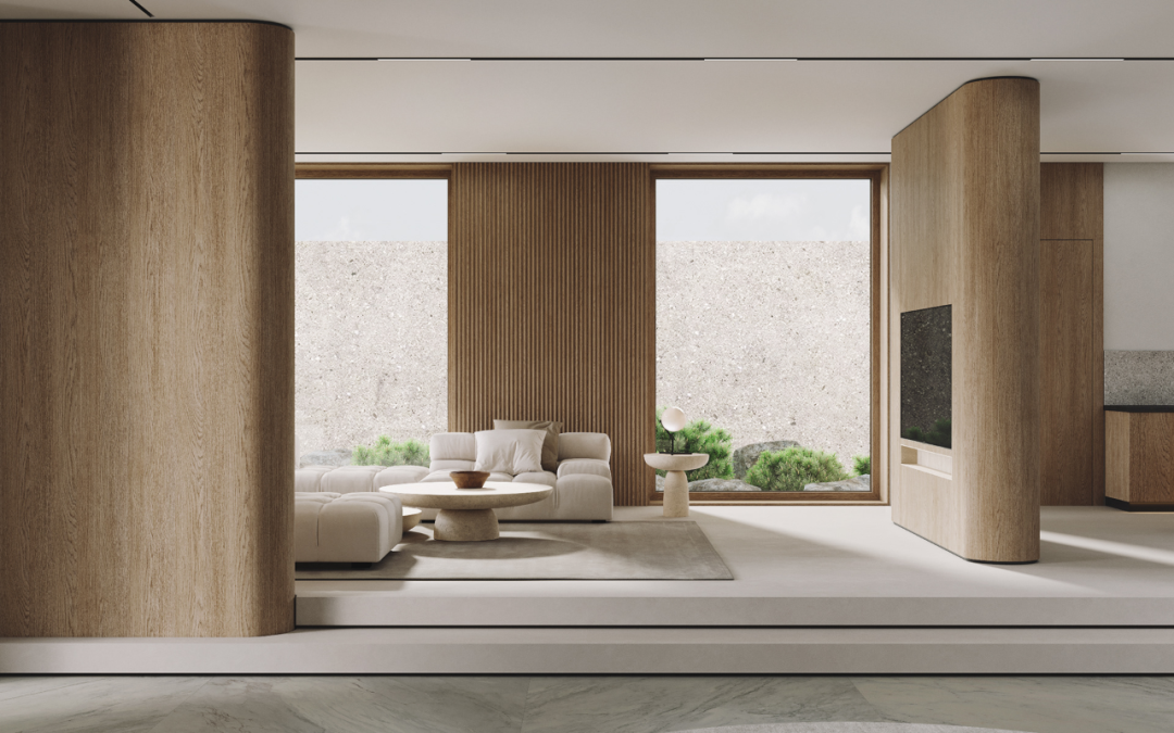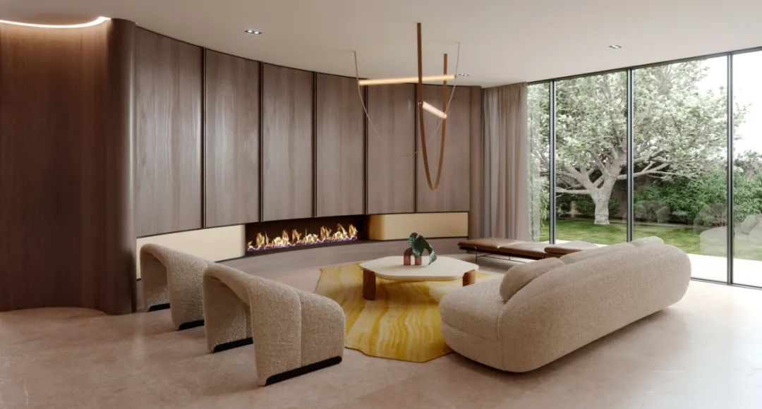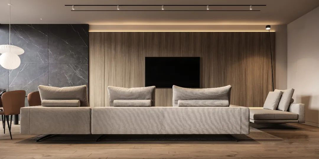 以工匠的温度,将木皮铺展再逐一拼接形成空间超高造型的木质饰面,以最包容的姿态接纳生活的温情暗涌~